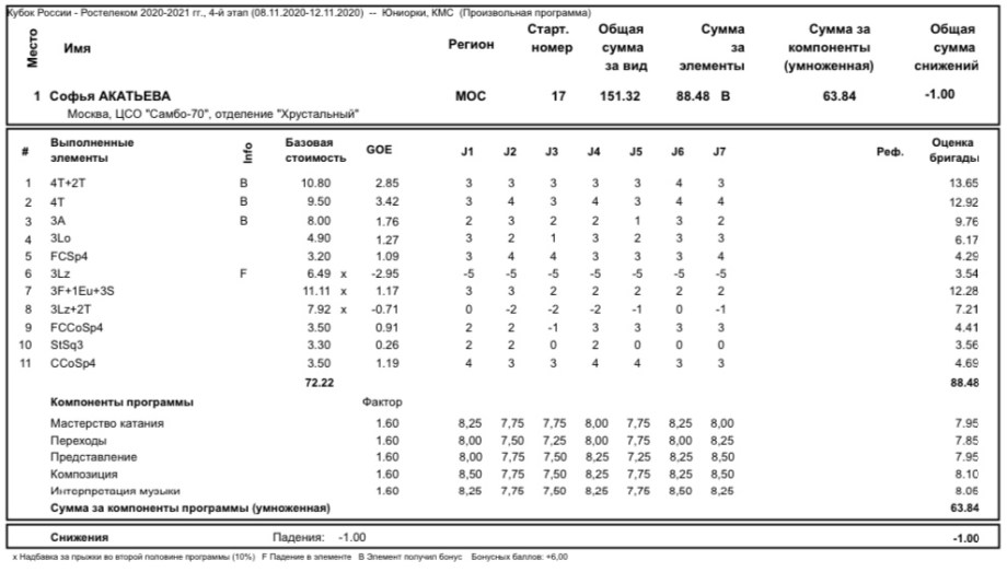 冒頭からクワド2本、3Aでどれだけ得点稼いでるのよ!?しかもすべてにボーナス点まで!!!