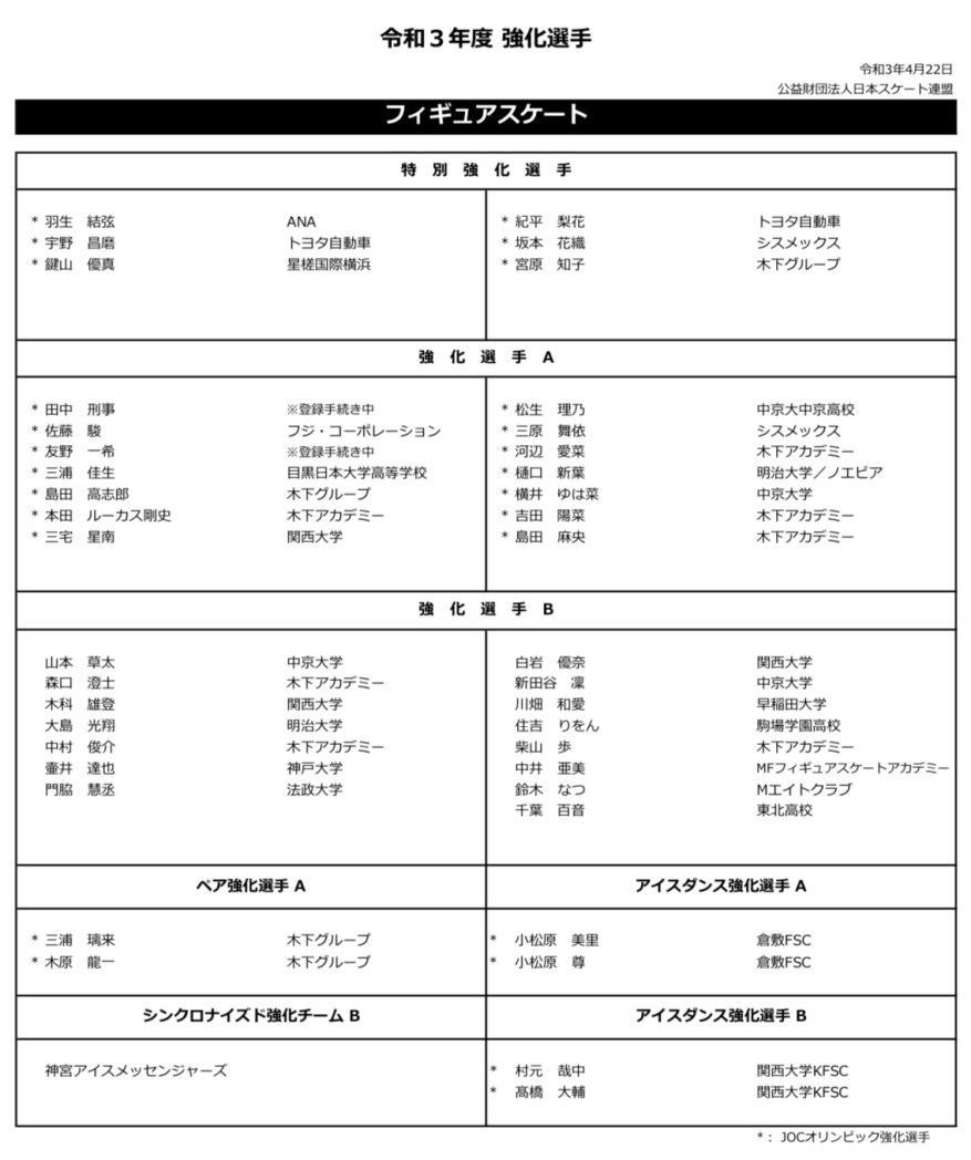 特別強化指定選手がこれまでにない一番多い人数の選出にびっくりしたわ。スケ連の焦りも垣間見えるような気がするわ。