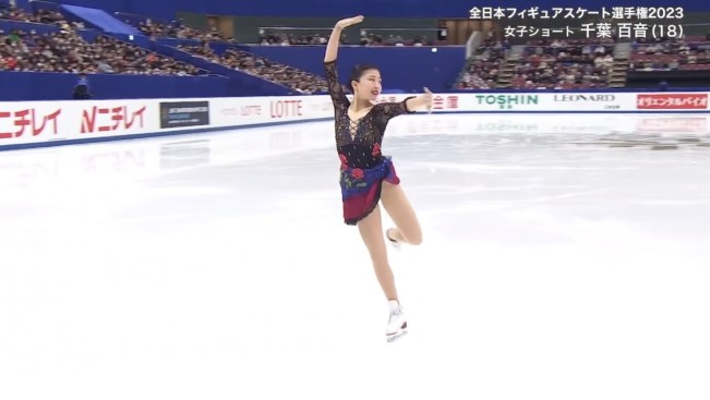 昨夜全日本フィギュア女子ショート。ノーミスの演技で3位発進となった千葉百音選手。